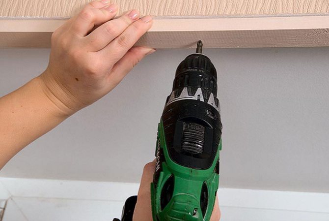 - Lors de l'installation de la corniche sur des murs en matériaux fragiles (cloison sèche, béton cellulaire), des trous doivent être percés d'un diamètre d'au moins 12 mm, en l'élargissant progressivement à partir du plus petit diamètre du foret. Pour les fixations dans ce cas, une cheville papillon spéciale est utilisée.