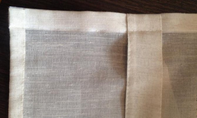 - Aux endroits des plis sur le côté sordide, les poches pour les brindilles doivent se révéler. Il peut s'agir de fil d'aluminium ou d'inserts de corset. Cousez les poches d'un côté, puis il sera pratique de les mettre de l'autre côté avant de laver le rideau.