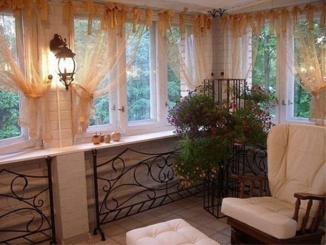 Parfois, il arrive également qu'il soit difficile de trouver une corniche adaptée au style de la pièce. Mais le désir de créer dans la maison un esprit d'unité et d'intégrité de l'image de tout le territoire - du salon au balcon, pour tout remplir d'une atmosphère de confort et de confort est si grand que trouver une fixation appropriée pour les rideaux ce n'est pas difficile. Il est aujourd'hui facile de décorer l'intérieur d'un balcon sans utiliser de corniche.