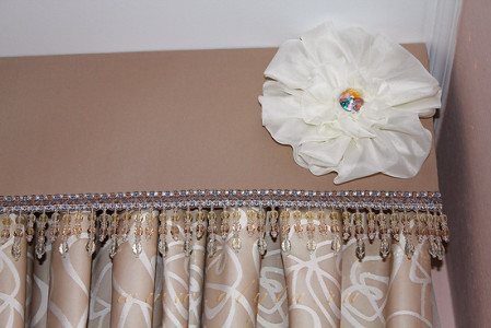 Souvent, la toile est complétée par des fils d'or et d'argent. Cette solution convient à ceux qui souhaitent transformer leur chambre en un véritable "palace". Un accent supplémentaire sur le luxe peut être fait en choisissant une toile cousue à la main.