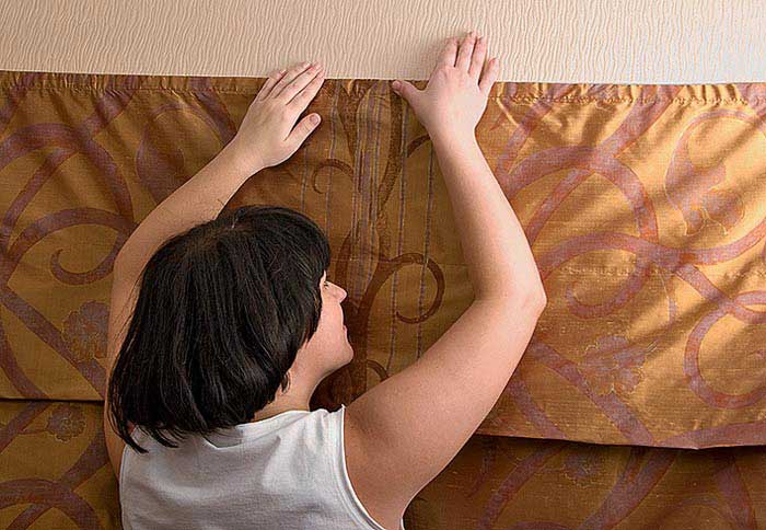 Cette méthode d'attachement de la ligne est obsolète. Cela ne rentrera dans aucun design. Il existe un moyen plus efficace. Pour le mettre en œuvre, plus de fixations sont utilisées. Les clous sont enfoncés avec un certain pas. Ensuite, la ligne est tirée. Il est enroulé en faisant plusieurs boucles autour de chaque ongle. Ensuite, la toile ne s'affaissera pas. L'inconvénient de cette méthode est le manque de possibilité de mise en œuvre dans n'importe quel intérieur.
