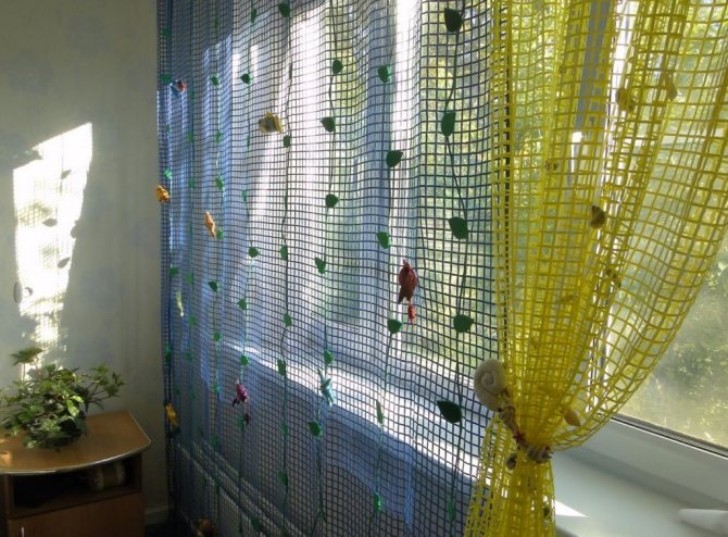 La ligne de pêche est fixée au-dessus de la fenêtre si la pièce est décorée dans le style: