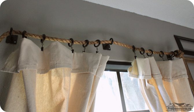 Un autre avantage des corniches à cordes est qu'elles sont peu coûteuses et qu'elles sont installées assez rapidement. Cependant, dans ce cas, il existe des restrictions sur le poids du rideau.