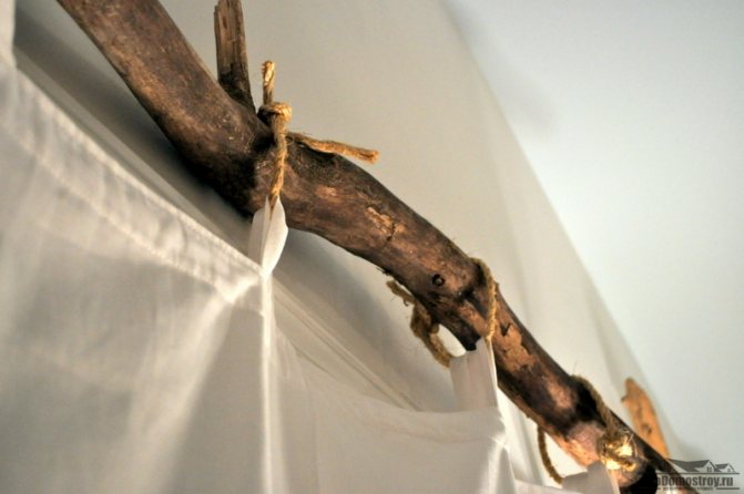 - une branche d'arbre, un hic sec - vous devez effectuer un traitement avec des agents antifongiques, peindre ou ouvrir avec du vernis, et la taille est arbitraire (plus large, plus étroite que les fenêtres), mais cette option ne correspond pas toujours au design;