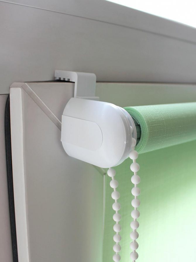 Dans le premier cas, l'installation de volets roulants sans perçage est effectuée à l'aide d'un support spécial, qui saisit le châssis de la fenêtre par le haut. Cette méthode est spécialement conçue pour l'installation du système "Mini". Les stores enrouleurs peuvent également être installés sur des fenêtres en bois.