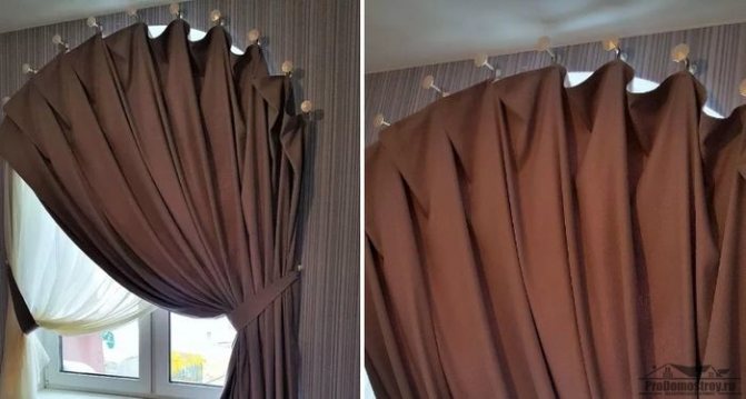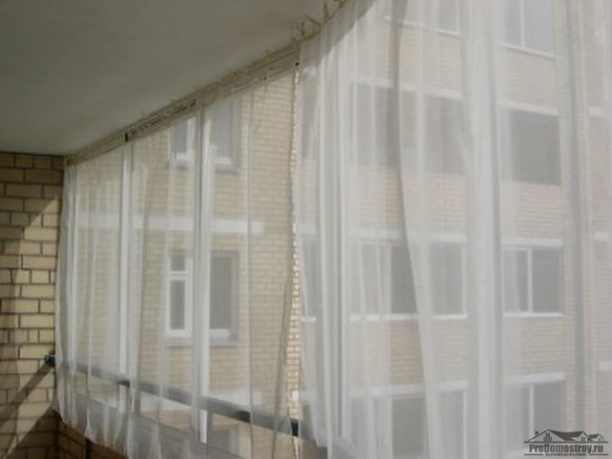 Noter! La ficelle est élastique, sujette à l'affaissement. Il est inacceptable que les rideaux soient poussés vers le centre - la ficelle métallique s'affaissera. Il est préférable de pousser les rideaux sur les bords du balcon, ce sera donc assez esthétique.