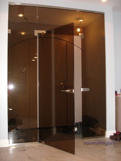 Une toile avec du verre teinté de cette manière est élégante et attrayante, elle est spectaculaire dans une pièce au design à la mode, dans laquelle le minimalisme et la sévérité (hi-tech, fonctionnalisme) prévalent.