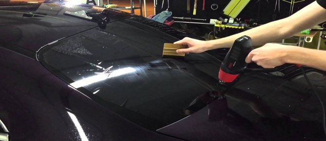 Il n'est pas recommandé d'humidifier trop l'essuie-glace pour éviter les stries. S'ils apparaissent, ils sont retirés avec une spatule en caoutchouc. Essuyez ensuite le verre. Après le lavage, la surface est dégraissée à l'alcool. Avant l'installation, assurez-vous de vous laver et de vous sécher les mains.