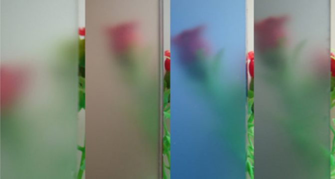 La finition du verre avec un film mat est le moyen le plus économique. Le film est disponible en différents motifs, motifs et nuances. Mais cette méthode présente certains inconvénients. Le verre recouvert d'un film mat n'est pas utilisé dans les cas où un frottement ou une forte humidité sur la surface peut être présent.