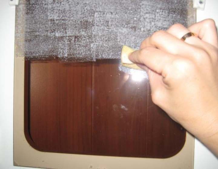 - S'il n'y a pas envie de changer l'ancienne toile, le film donnera une chance de la transformer, cachant les défauts de la porte et du vieux verre.
