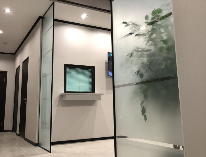 - Décoratif et informatif. Cet ajout au verre peut changer le design de la porte, mettre en évidence les caractéristiques individuelles de l'intérieur. Sur ce matériel, des inscriptions ou des images sont appliquées, ce qui est d'une grande importance pour diverses institutions.