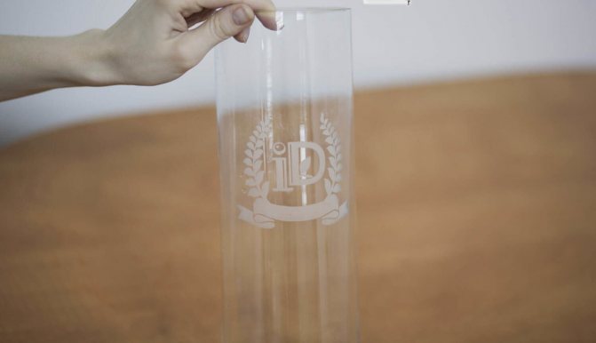 Nous mettons une petite quantité de pâte sur le verre et commençons à le frotter sur le verre avec un coin en métal. Plus vous le démontez longtemps, plus le verre deviendra opaque. Une fois le traitement terminé, vous pouvez laver la pâte avec un détergent à vaisselle. Voilà, en quelques minutes vous avez un vrai verre dépoli.