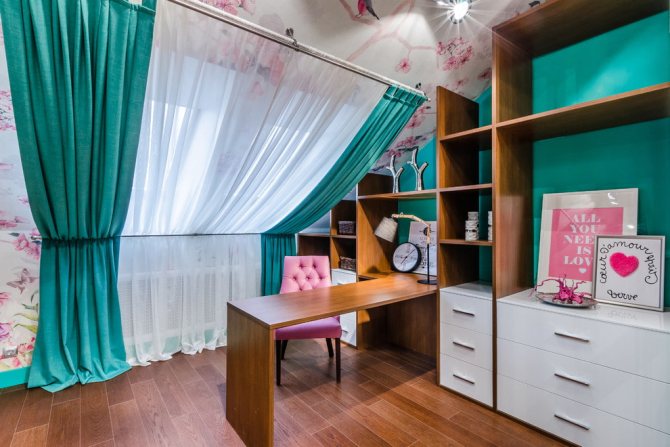 - Des panneaux de tissu BlackOut spéciaux sont souvent installés dans les chambres en mezzanine. Ils vous permettent d'absorber la lumière de l'extérieur de 80 à 90% et sont bien adaptés pour organiser le repos de jour et de nuit.
