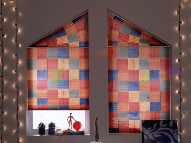 - Les stores plissés en tissu spécialement traité sont très appréciés. Grâce à leur conception spéciale, ils peuvent être conçus pour toutes les formes de fenêtres, y compris inclinées. Plusieurs bandes de tissu "plissées" couvriront parfaitement les fenêtres panoramiques.