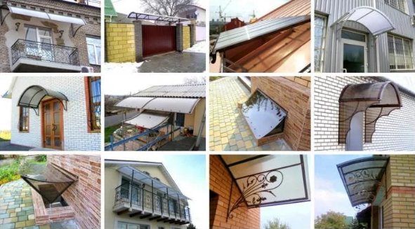 Dans la plupart des cas, la visière est une verrière modulaire. Le plus souvent, cela se fait au-dessus du porche à la porte d'entrée. Mais un auvent similaire est utilisé sur les balcons et sur les fenêtres, car il présente un certain nombre d'avantages: