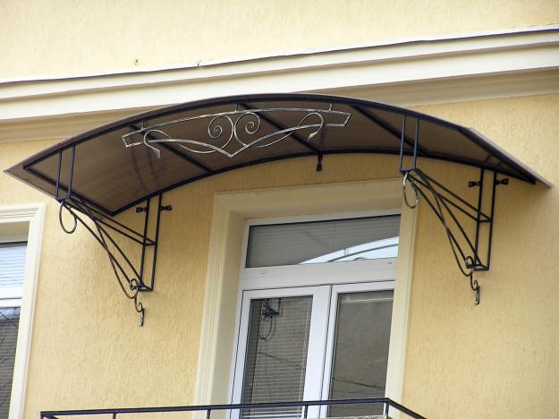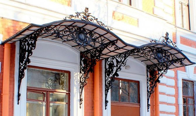 - Auvents concaves. Ils ont l'air très élégants et respectables, surtout si les côtés de la verrière sont garnis de motifs en métal forgé.