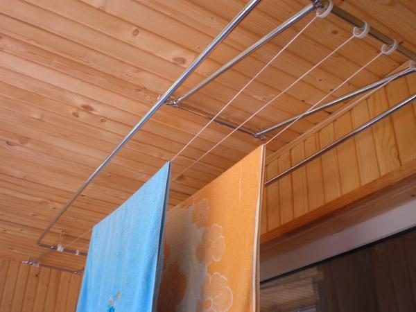 Dans ce cas, vous devez faire attention à la résistance des supports - il est préférable de choisir un séchoir avec des cordes synthétiques, qui sont plus pratiques, pas sujettes au frottement et à la formation de champignons