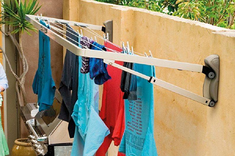 Les constructions pour le séchage des vêtements en cordes sont l'option la plus budgétaire, se distinguant par leur primitivité, mais néanmoins très populaires