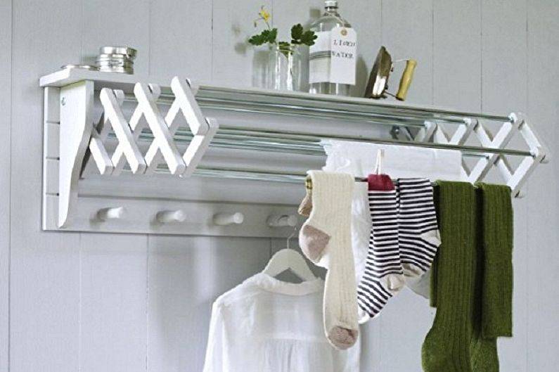 D'après les noms, les caractéristiques de l'installation de chaque modèle sont claires. Des explications peuvent être nécessaires uniquement sur les sécheuses murales. Ils sont généralement de petite taille - 60-100 cm de long, pour 3-6 cordes / barres transversales (photo).