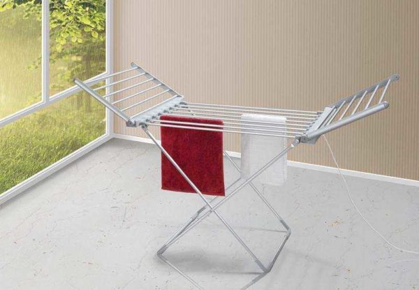 - Facile à entretenir. La structure est facile à nettoyer de la poussière et de la saleté. Pour ce faire, essuyez-le avec un chiffon humide. Lors du séchage du linge, vous pouvez être sûr qu'il n'y aura pas de traces de saleté du sèche-linge sur le tissu.