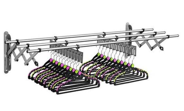 - Résistant aux charges lourdes. Un tube peut contenir jusqu'à 2,5 kilogrammes de vêtements. Si vous vous conformez à cette exigence et ne suspendez pas trop de vêtements sur les tubes, la structure ne se cassera jamais et ne se pliera pas sous le poids du linge.