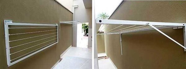 Une version améliorée et raffinée est un sèche-linge sur le balcon avec des cordes torsadées. Il se compose de deux parties: une fixe, qui est attachée à l'un des murs, et une mobile, que nous fixons au mur opposé avant de suspendre le linge et de le retirer lorsqu'il est sec et enlevé.