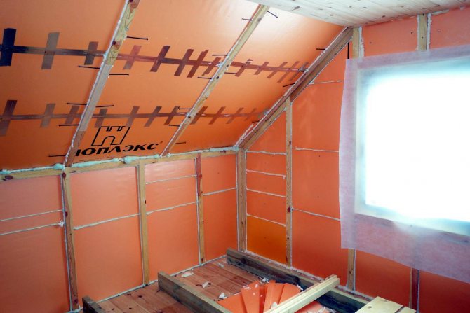 faible résistance mécanique, par conséquent, si vous envisagez de réaliser l'isolation de vos propres mains, vous devez faire preuve de prudence lors de la coupe et de la pose des plaques; le matériau doit être protégé de la lumière directe du soleil, car il est détruit lorsqu'il est exposé aux rayons ultraviolets; la mousse elle-même est incombustible, mais lorsqu'elle est chauffée à des températures élevées, elle commence à émettre des substances toxiques; faible perméabilité à la vapeur, c'est pourquoi la pièce mansardée, isolée avec de la mousse plastique, peut être humide. Pour éliminer la carence, il est nécessaire de réfléchir au système de ventilation; l'achat de mousse plastique coûtera plus cher que l'achat de laine minérale