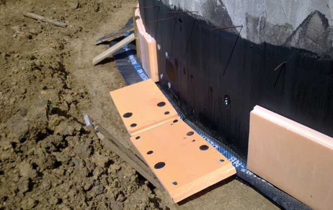 - L'isolation avec de la mousse est réalisée de l'intérieur et de l'extérieur. Les portées sont également au sol, au plafond et bien plus encore. De plus, la surface de la zone aveugle est isolée avec du penoplex.