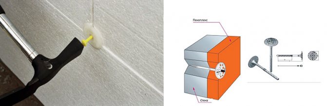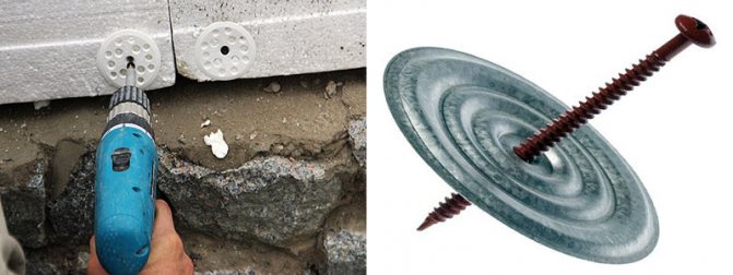 - Matériel. Des chevilles à tête large sont utilisées pour l'isolation thermique externe des murs. Le processus est laborieux, la plaque est clouée dans les coins et au centre.