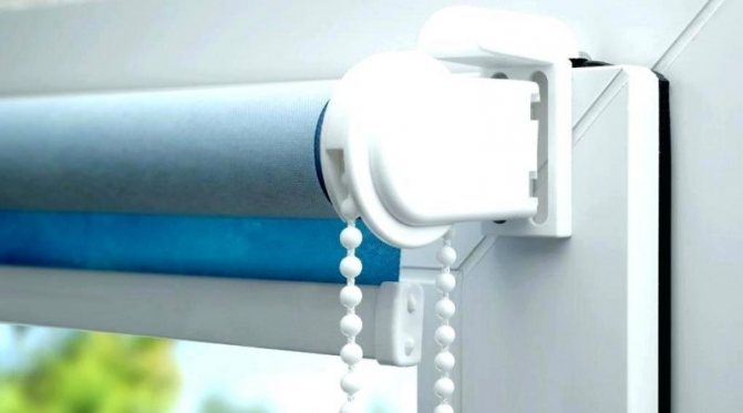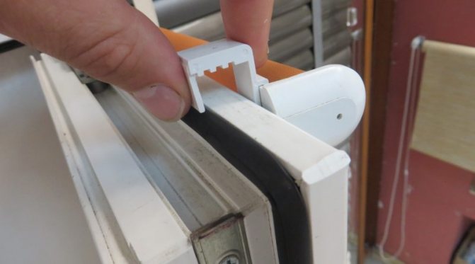 Le montage sur des supports en plastique est un autre moyen d'éviter de percer une fenêtre. Dans ce cas, les supports ne sont pas vissés au profil de la fenêtre, mais s'y accrochent simplement. Le rouleau de tissu lui-même y est attaché. Cela semble très esthétique.