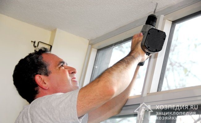 Afin d'installer la structure uniformément, une distance égale doit être mesurée de chaque côté de la fenêtre. Marquez les points nécessaires et connectez-les avec une ligne droite. N'oubliez pas l'indentation du guide. La ligne droite indique où vous fixerez le guide. Il est important de s'assurer qu'il n'est pas biseauté. Le guide tiendra aux chevilles, si le plafond est en bois, vous pouvez utiliser des vis autotaraudeuses.