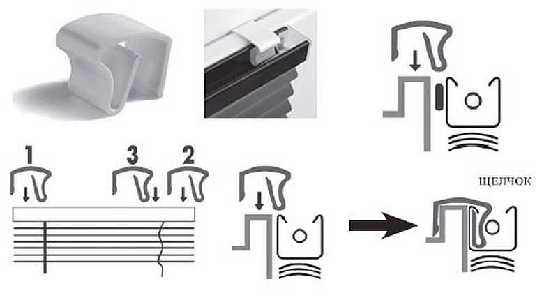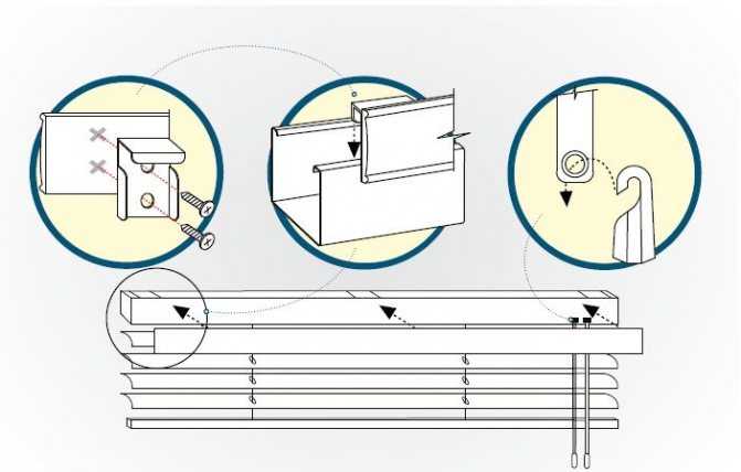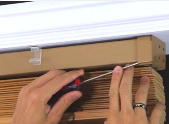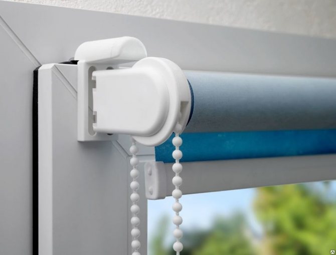 Les trous pour les vis pour les supports sont percés dans la partie supérieure du châssis (sur les ouvrants) ou à l'extérieur du parclose (sur les fenêtres aveugles). Ensuite, vous devez accrocher les stores en les fixant dans les supports. Lorsque vous placez le système de stores à l'intérieur de l'ouverture de la fenêtre, la ligne de pêche (loquet) est tirée pour maintenir la feuille roulée ou les lamelles près du verre lorsque les châssis sont ouverts. Un trou pour la ligne de pêche est percé dans le talon de vitrage inférieur (sous les principaux) ou sur le côté de l'ouvrant, le dispositif de retenue est enfilé dans les bouchons, obtenant une tension moyenne et lié à un nœud. Toutes les pièces décoratives et fonctionnelles sont installées sur la structure montée: plateaux, loquets, attaches pour le levier et la chaîne.