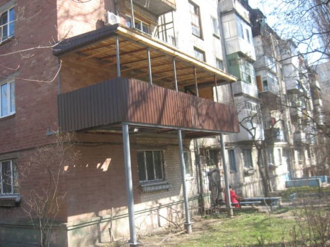 S'il n'y a pas de balcon, mais qu'il est conçu pour le construire, alors avec une construction indépendante, il est préférable d'utiliser des supports ou des extensions. Les propriétaires d'appartements au rez-de-chaussée sont pour la plupart privés de commodité supplémentaire. L'option idéale dans ce cas est une charpente métallique qui sera fixée au mur du bâtiment. Avec une installation appropriée, les voisins qui vivent plus haut peuvent également augmenter la superficie du balcon à l'avenir.