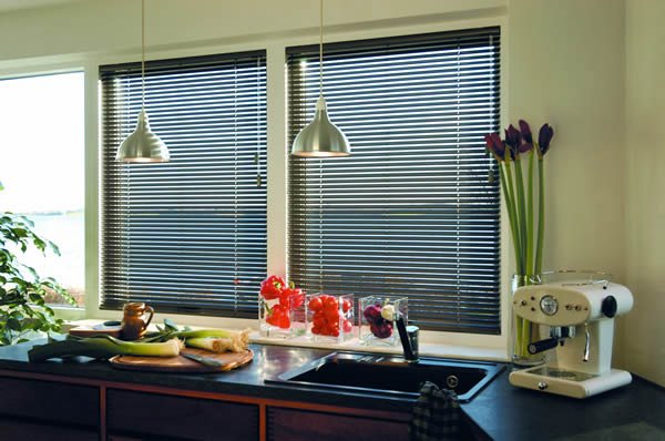 Les stores métalliques sont généralement fabriqués à partir de lumière alliages duraux... Ce sont des conceptions bon marché qui sont couramment utilisées dans les environnements industriels, mais qui sont également applicables dans les cuisines et les intérieurs loft ou high-tech. Les lamelles peuvent être perforées pour créer un effet de lumière inhabituel ou recouvert de matériaux spéciaux pour leur donner une surface velours.