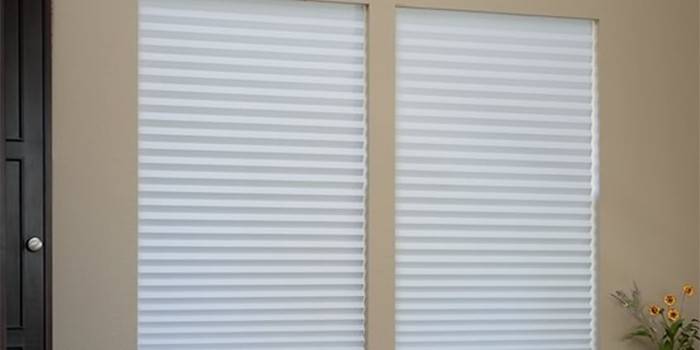 Stores plissés Ils sont également fabriqués à partir de tissu, parfois de papier, qui est traité par des machines spéciales avec la formation de plis horizontaux, grâce auxquels le produit est facile à plier et à fixer à un certain niveau. Lorsqu'ils sont enroulés, ces rideaux prennent un minimum de place dans l'ouverture de la fenêtre, et surtout avantage réside dans la possibilité d'utiliser sur des fenêtres de configuration complexe.