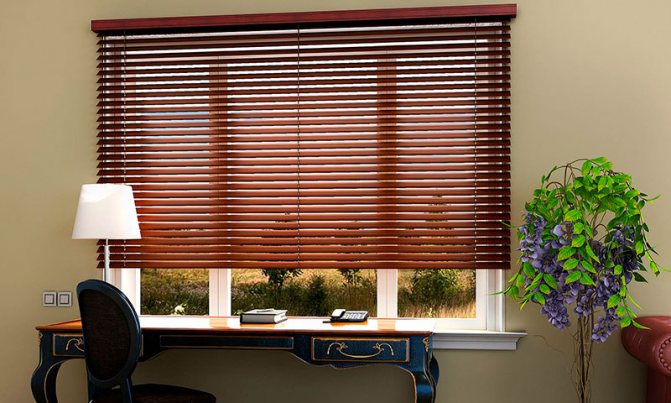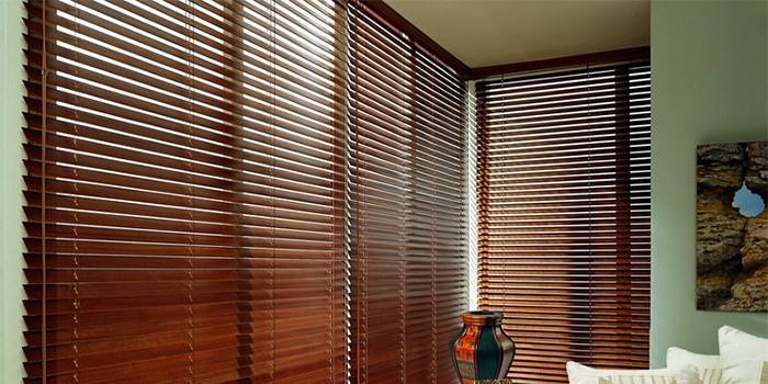 L'arbre convient aux stores horizontaux. Peut être utilisé plus ou moins races bon marché (liège, tilleul, pin peint) ou précieux (wengé, acajou et palissandre). Le prix, dans tous les cas, est plusieurs fois plus élevé que celui des homologues en plastique et en tissu, et non seulement le coût, mais aussi les performances dépendent de la race. Les stores en bois les moins chers seront fragiles et commenceront bientôt à s'estomper au soleil, changeant de couleur, tandis que les stores de haute qualité dureront longtemps et ne succomberont pas aux influences de la température. Le nettoyage humide du bois est contre-indiqué - seul le nettoyage à sec convient. Il est préférable de ne pas fabriquer de grandes structures en bois - elles auront l'air massives et lourdes.