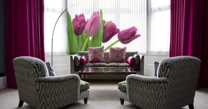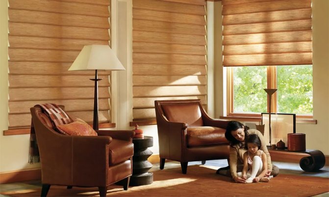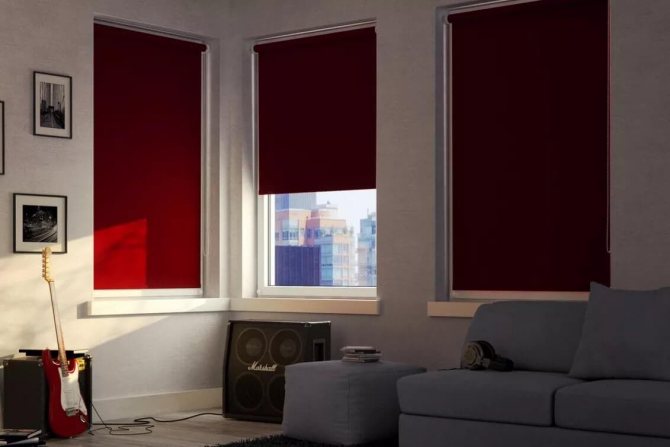- teinte contrastée il n'est approprié que si l'intérieur est décoré dans des couleurs neutres et dans la même palette de couleurs, alors les stores deviendront un accent;