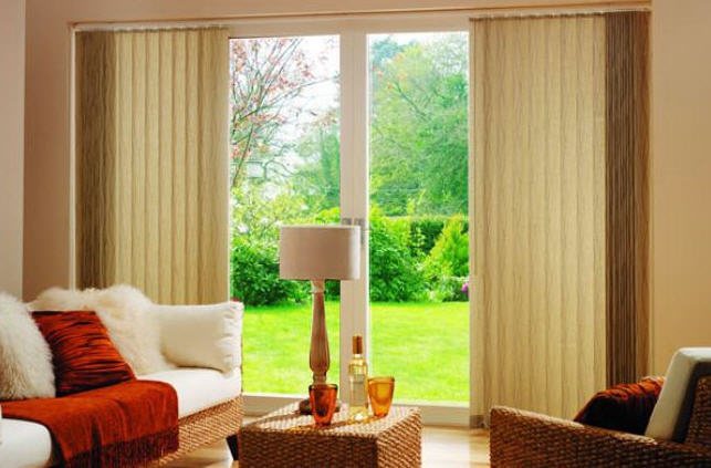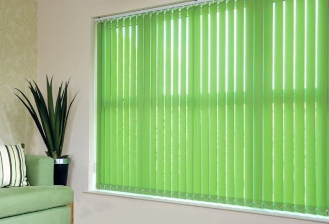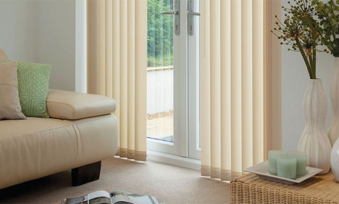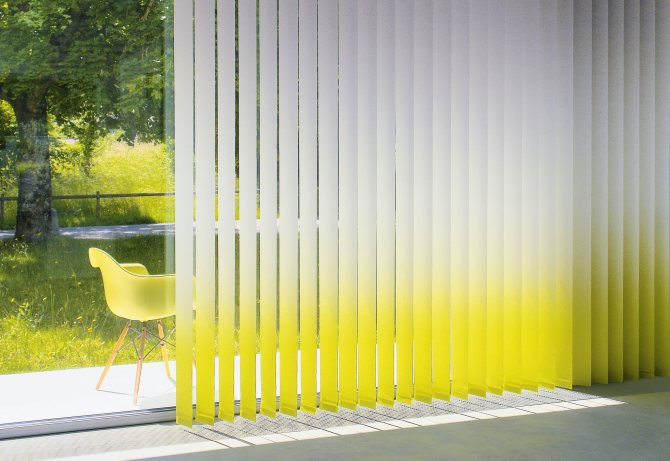 Les stores verticaux ressemblent surtout à des rideaux, ils ne peuvent être qu'en tissu. La conception est un système de lamelles verticales, qui sont fixées en haut à la corniche et en bas sont reliées par une chaîne. La largeur de la lamelle est généralement de 127 ou 89 mm: pour les grandes pièces, des éléments plus larges sont applicables, dans les petites pièces, les lamelles étroites auront l'air plus harmonieuses. Les stores s'ouvrent d'un côté ou du centre aux deux côtés, la longueur peut aller jusqu'au rebord de la fenêtre ou au sol.