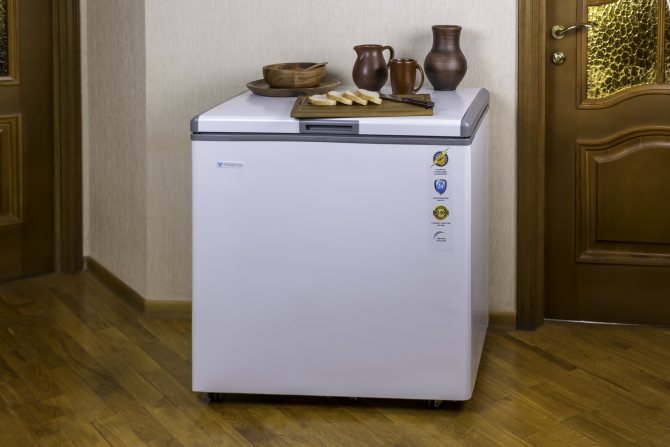 - Congélateurs et coffres. Le principe de leur travail n'est pas significativement différent. Ils comprendront également un cycle de fréon uniquement dans des conditions où la température ambiante est supérieure à -24 C. Lors de gelées plus sévères, vous risquez la santé de l'équipement de réfrigération. Pour contrôler la situation, il est nécessaire d'installer un thermomètre extérieur spécial sur le balcon.