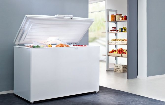 - Congélateurs coffres. La principale différence est le chargement horizontal. L'espace intérieur est délimité par des cellules.