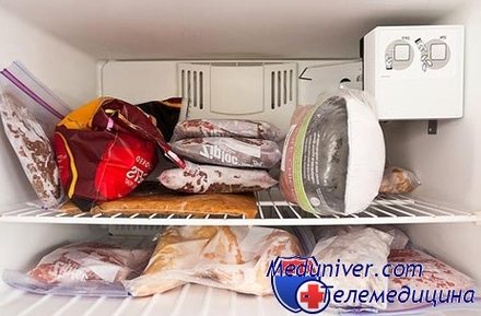 Le stockage correct des aliments dans le congélateur peut être déterminé visuellement. Si les conteneurs sont recouverts d'une petite couche de givre, c'est très bien. Tout emballage sorti du congélateur est immédiatement recouvert de gouttelettes de givre fondu. Le produit prélevé doit être utilisé complètement ou transféré dans la zone de fraîcheur du réfrigérateur pour une utilisation précoce.