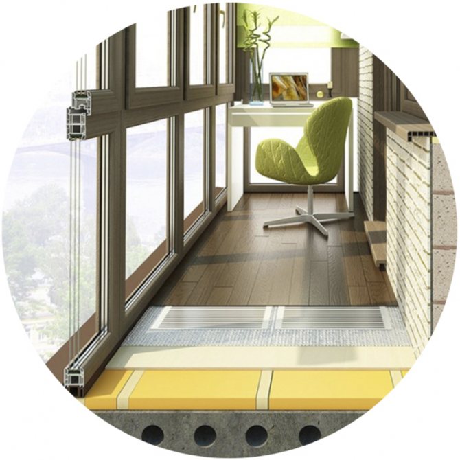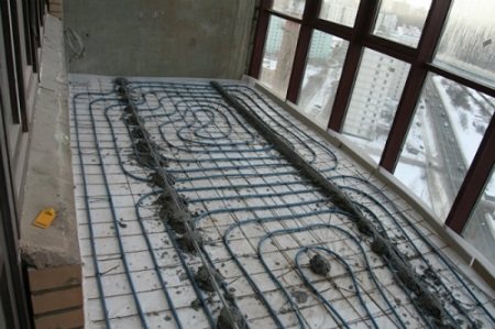 Une couche d'isolation thermique est posée sur la base du sol de la loggia. Sans cela, la chaleur ira à l'extérieur. Ensuite, une chape brute est réalisée sur laquelle le système de chauffage est posé. Le chauffage est recouvert de sols autonivelants. Un revêtement de sol est posé sur la surface solidifiée finie. À l'aide du panneau de commande, vous pouvez régler une température intérieure confortable. Un balcon fermé et une loggia avec chauffage au sol deviennent un espace de vie à part entière.
