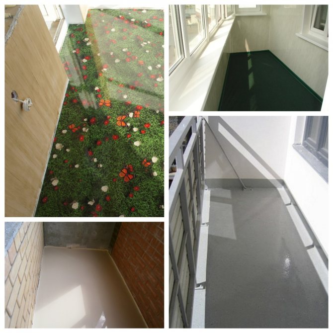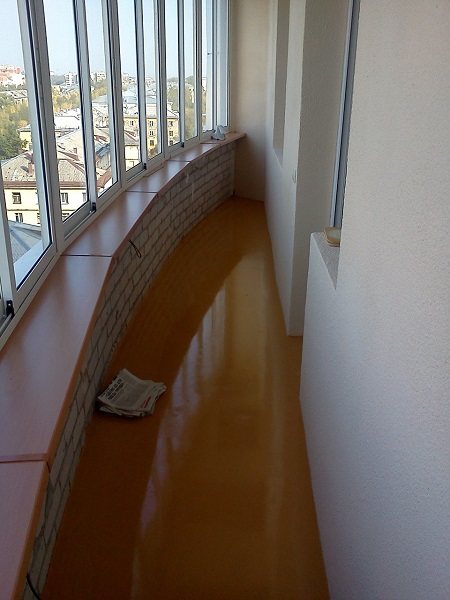 Balcon chauffé fermé. Si l'isolation et le chauffage sont réalisés sur le balcon / loggia, vous pouvez utiliser n'importe quel type et type de revêtement autonivelant sans restrictions.