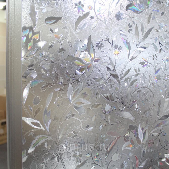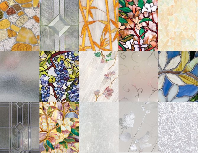 - transparent (ou incolore) et opaque. Transparent, en règle générale, imite la structure ondulée du verre dépoli, leur motif est à peine perceptible, ressemble visuellement au gel. Les films opaques peuvent être de n'importe quelle combinaison de couleurs, par exemple, imitant des vitraux originaux multicolores brillants avec des bandes de séparation de plomb caractéristiques. Divers dessins d'animaux, de plantes, ainsi que des reproductions de peintures d'artistes célèbres sont populaires. Le niveau de technologie moderne permet d'appliquer des photographies de parents ou d'êtres chers au revêtement. En d'autres termes, le nombre d'options est pratiquement innombrable et n'est limité que par l'imagination du client;