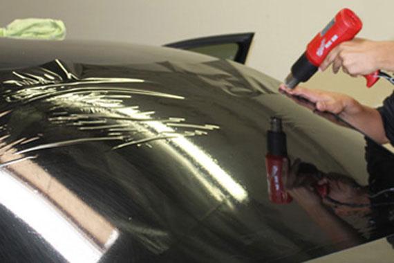 Après avoir coupé la bonne quantité de teinte, le pare-brise et la lunette arrière de forme inégale devront être thermoformés. Cela aidera à coller correctement le film sur la voiture afin que la teinte soit exactement et s'adapte parfaitement à la taille.