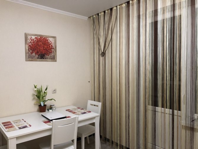 Avant de commencer à fabriquer des rideaux à partir de fils, vous devez choisir le matériau. Bien que les fils naturels soient respectueux de l'environnement et sans danger pour le corps humain, il est préférable de choisir des fils de polyester pour fabriquer de la mousseline. Un tel fil est également absolument inoffensif, mais en plus de cela, il est plus pratique de travailler avec et d'en prendre soin à l'avenir. Les fils de polyester peuvent être de n'importe quelle couleur, être décorés avec du lurex, ce qui donnera l'occasion de créer un rideau exactement de la forme qui décorera et complétera surtout l'intérieur de la pièce. De plus, sous l'influence de la lumière ultraviolette, ces fils ne se décolorent pas, ce qui explique leur longue durée de vie. Un tel rideau n'est pas électrifié et lorsqu'il est mouillé, il sèche rapidement.