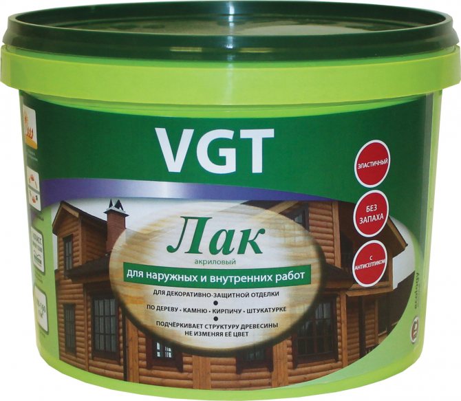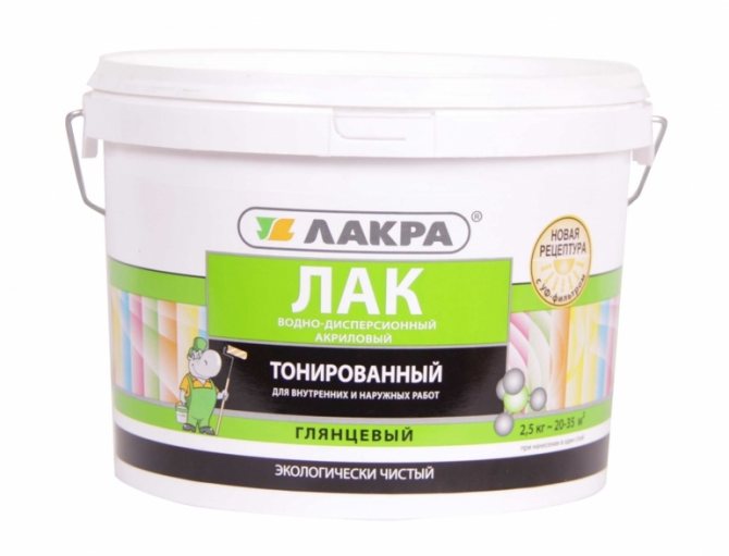 L'option de revêtement la plus écologique et la plus sûre. De tels mélanges n'ont pas d'odeur désagréable, ce qui facilite grandement le processus de revêtement - ventilation intensive inutilement longue et équipement de protection. Les vernis à base d'eau se caractérisent par un taux de pénétration relativement faible. Après une polymérisation rapide (2-3 heures), un film protecteur élastique est formé, qui, selon la composition, est soit transparent, soit pigmenté dans un ton qui imite les essences de bois précieuses. Les mélanges transparents peuvent recevoir la teinte souhaitée en ajoutant des taches d'eau ou d'alcool.