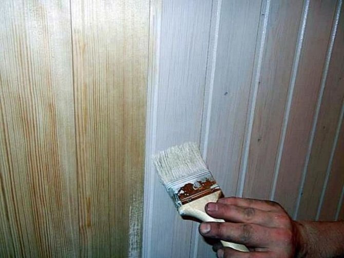 Tout type de ce revêtement masque complètement ou partiellement la texture du bois, et si une couche suffisamment épaisse est appliquée, alors une imitation visuelle presque complète du plastique peut être obtenue. Le principal avantage de cette option est la possibilité de peindre la doublure dans une couleur appropriée qui correspond à la conception générale de la pièce. La peinture est opaque, ce qui vous permet de masquer les défauts de couleur (assombrissement) du bois et les petites rayures, ainsi que de protéger au maximum la surface des rayons ultraviolets.