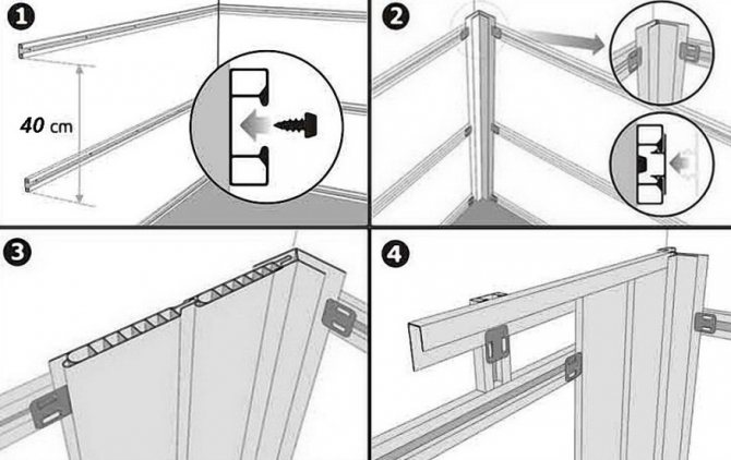 - le plastique est monté en fixant chaque panneau au revêtement sur une agrafeuse de construction ou des vis autotaraudeuses dans le sens vertical.