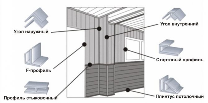 Pour que la finition ait un aspect complet, des composants sont utilisés - profilés de départ, de connexion et en F, coins, plinthes. Ils sont produits dans une large palette de couleurs en fonction des couleurs du matériau de base.